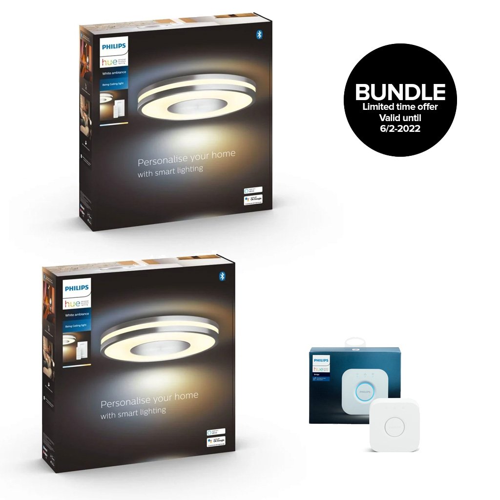 zz Philips Hue - 2x Being Hue Ceiling Lamp - White Ambiance + Hue Bridge - Bundle