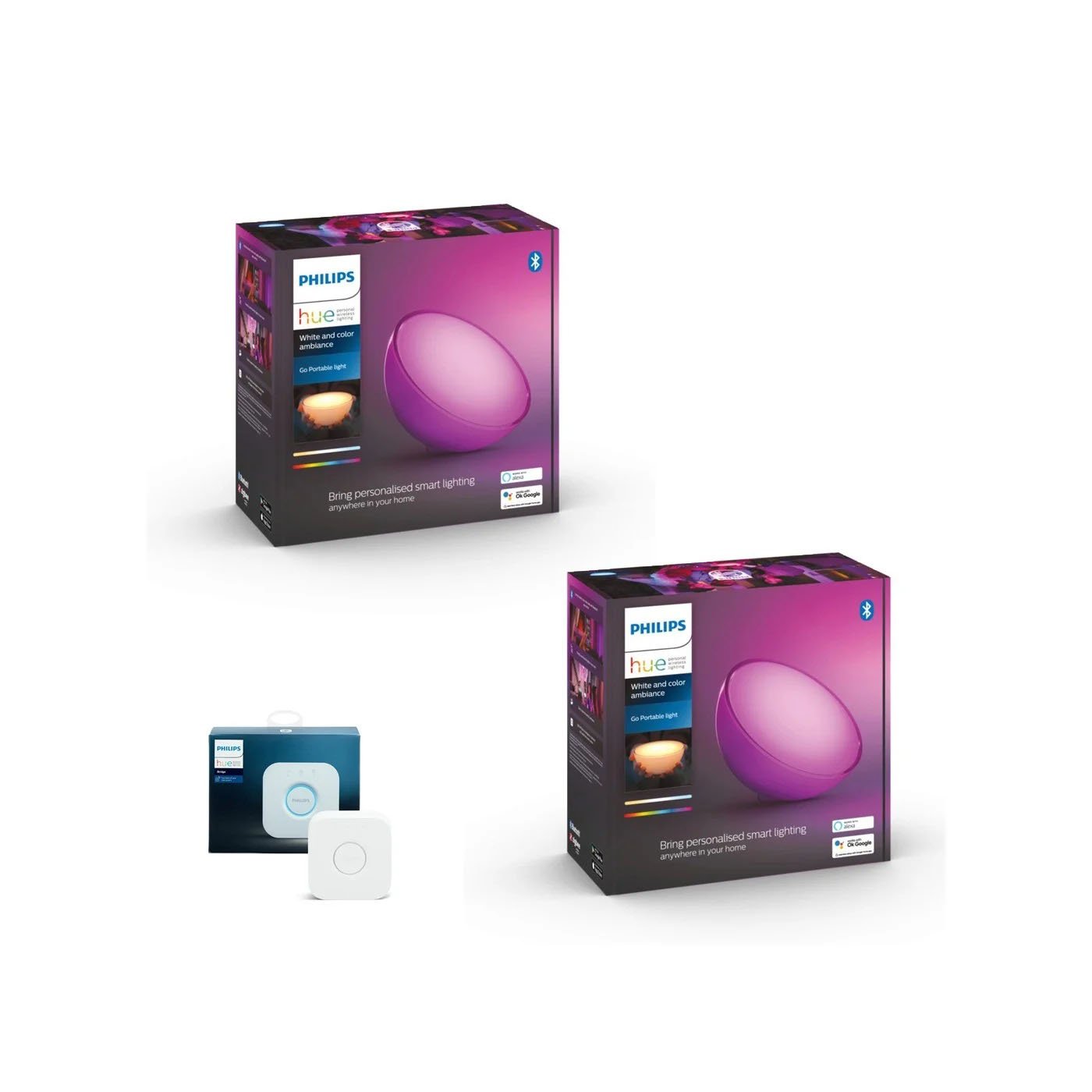 zz Philips Hue - 2x Go Table Lamp - White & Color Ambiance & Hue Bridge - Bundle