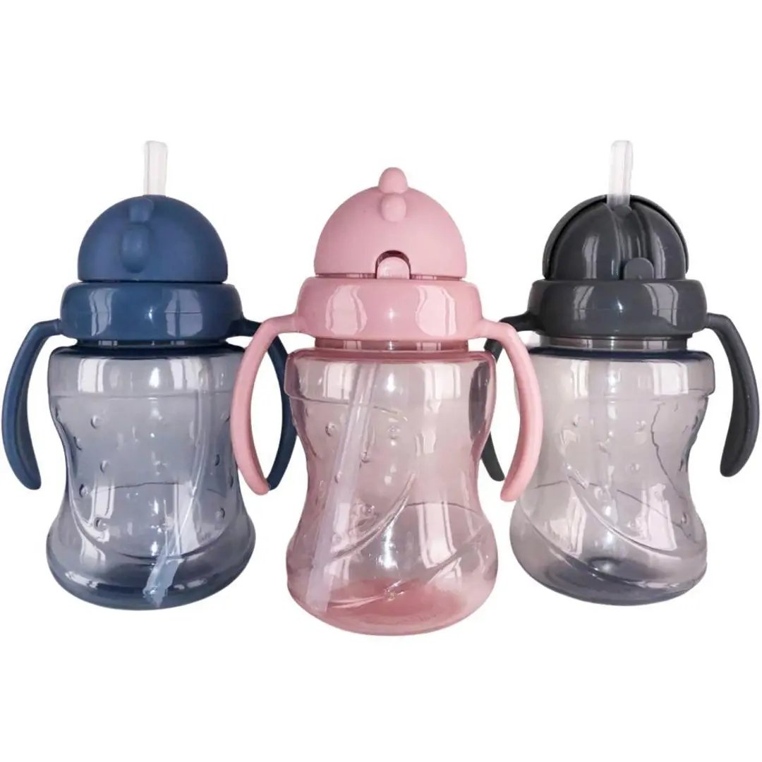 Painotettu pillimuki hihnalla, roiskeenkestävät mukit 2-vuotiaille vauvoille, harjoitusmuki taaperoille, 300 ml, vaaleanpunainen