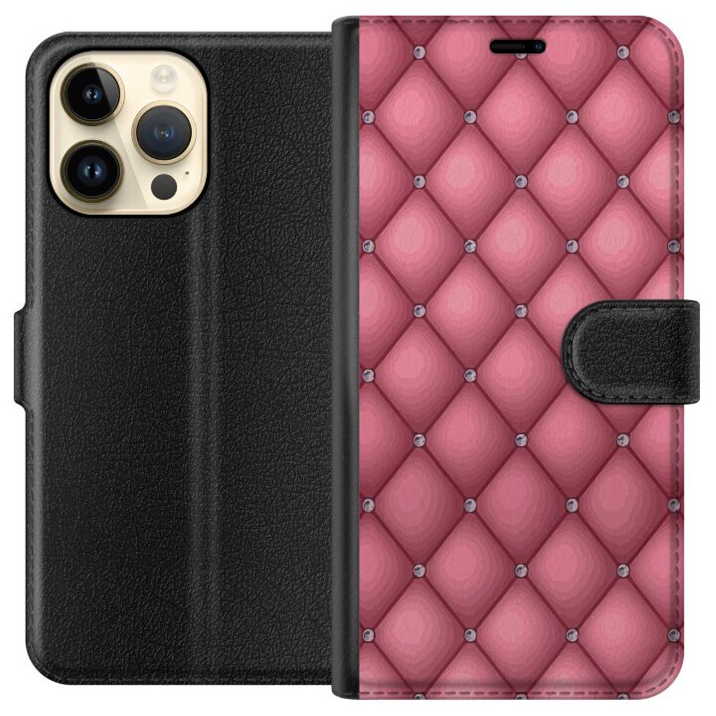 Apple iPhone 15 Pro Max Musta Lompakkokotelo Exklusivt Rosa Mönster
