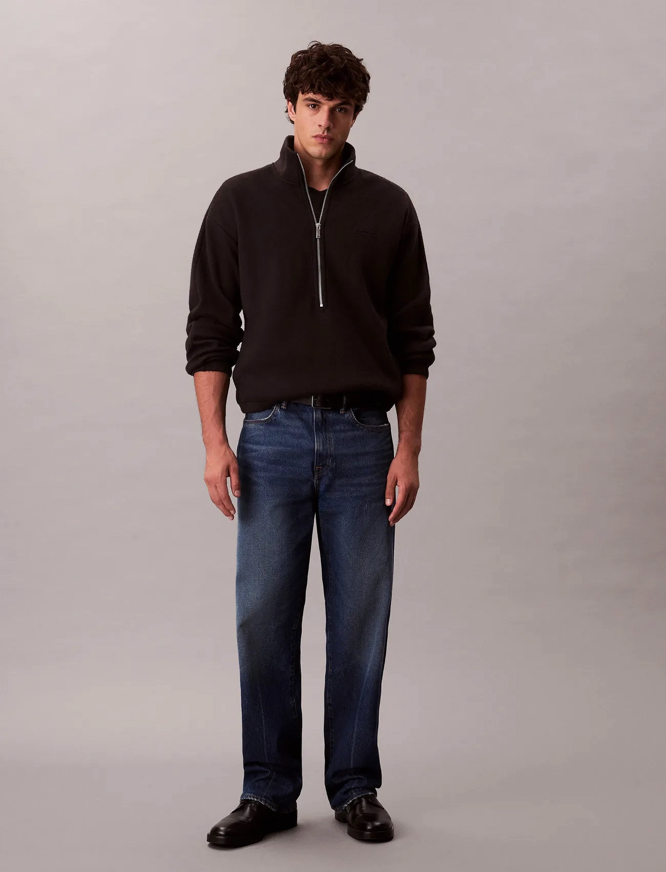 Calvin Klein Polar Fleece Rib Mock Neck Qtr Z - Black - S