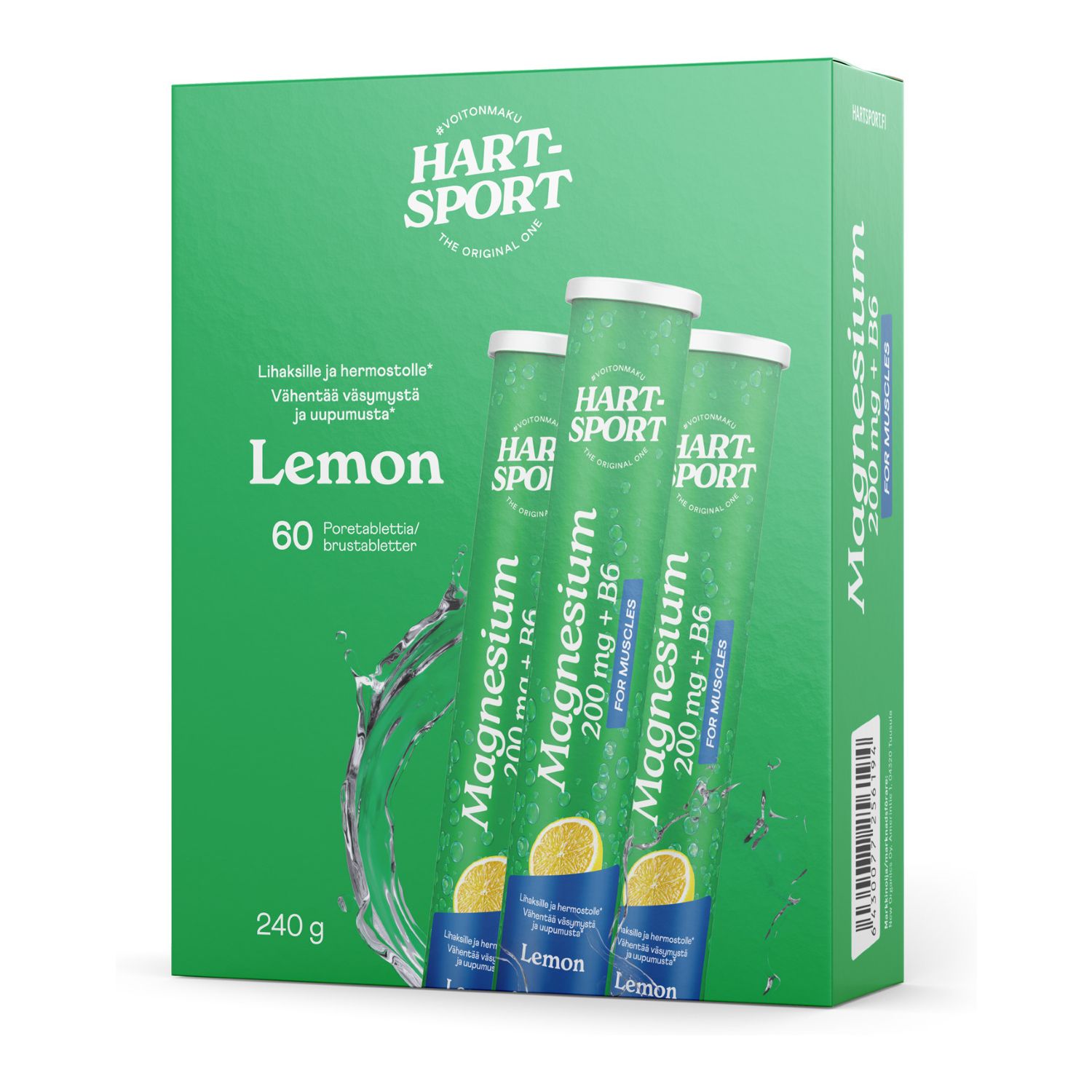 Hart-Sport Magnesium + B6 Poretabletti, Sitruuna, 3 x 20 tbl