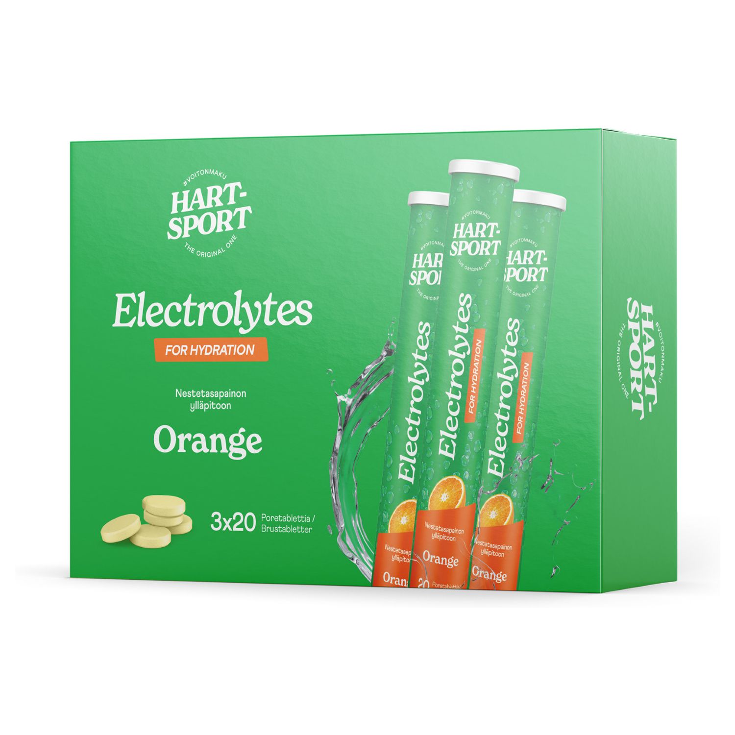 Hart-Sport Electrolytes Poretabletti, appelsiini, 3 x 20 tbl