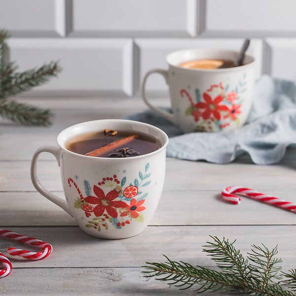 Suuri posliinimuki kahville teelle 450 ml, 10 x 9 cm - kukat