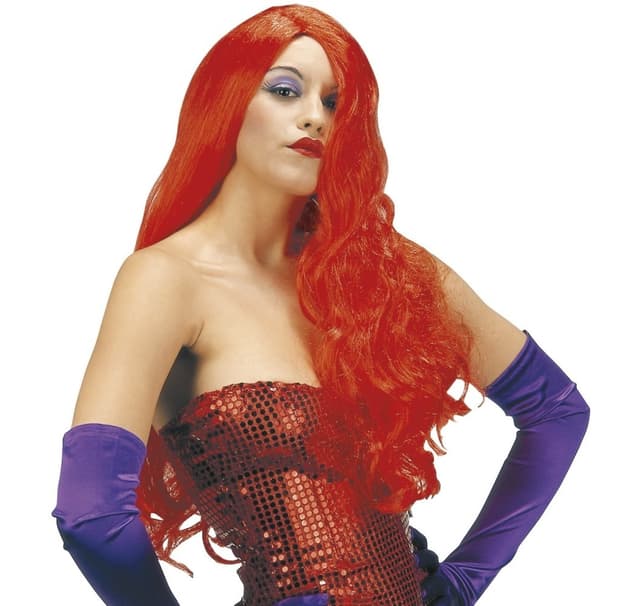 Punainen peruukki, aaltoileva, pitkä.