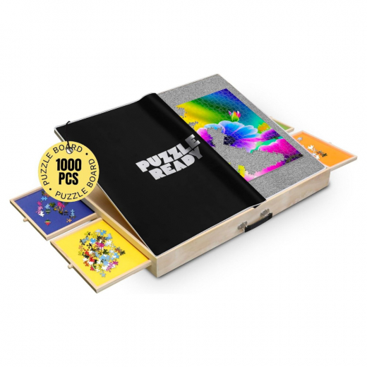 Puzzle board with drawers and cover