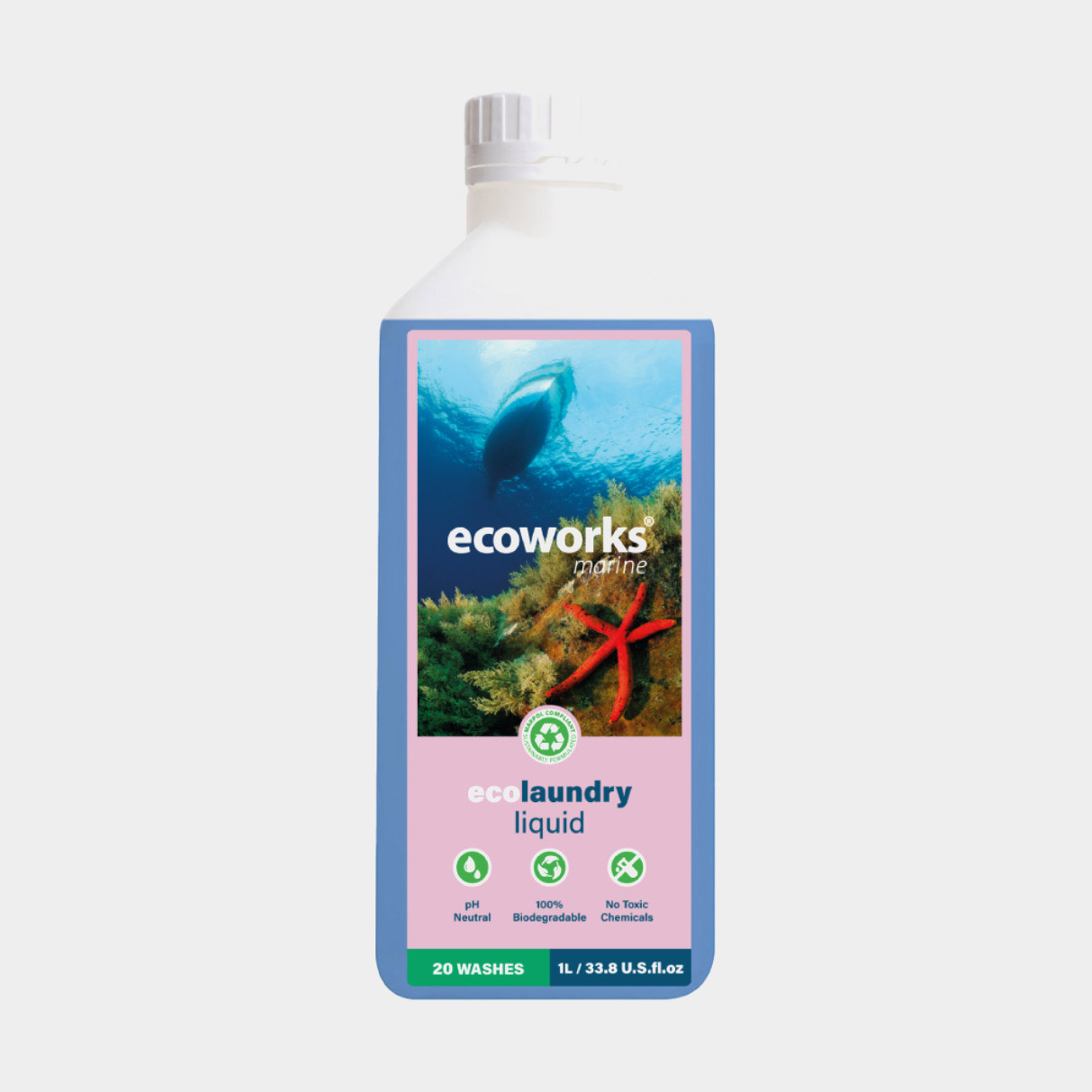 Nestemäinen pyykinpesuaine Ecoworks Marine ECO Laundry Liquid, tiivistetty, 1 litra