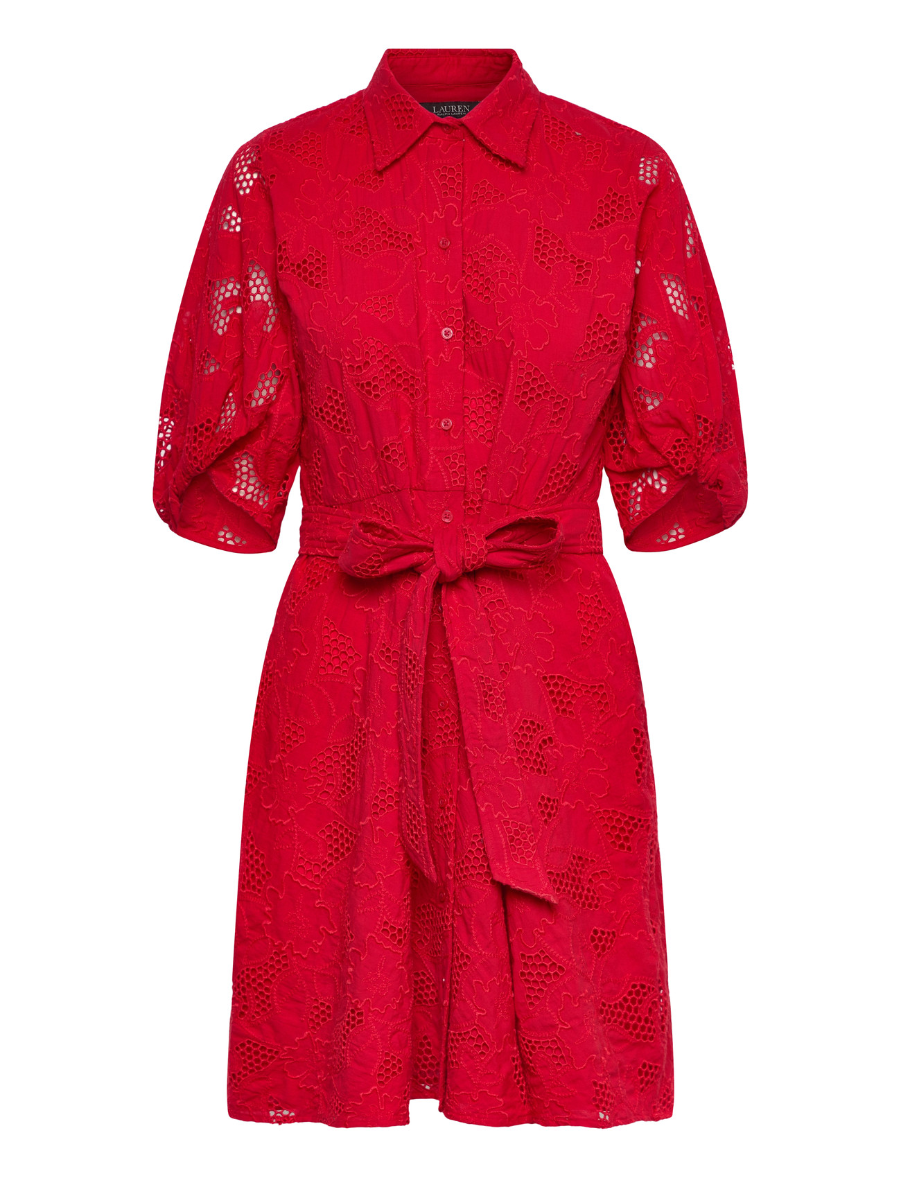 Lauren Ralph Lauren Eyelet Voile Balloon-Sleeve Shirtdress - Red - 44