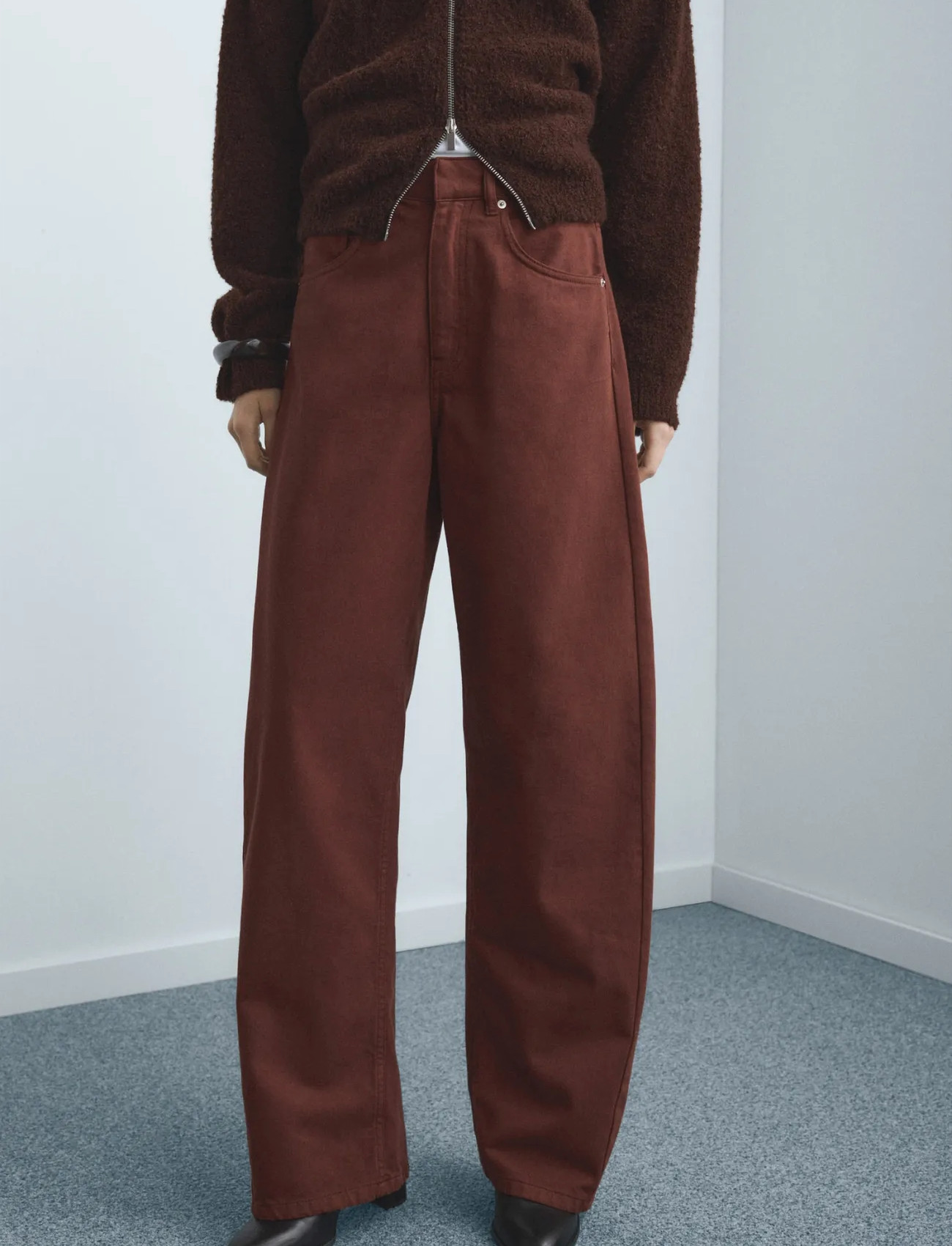 Mango Mid-Rise Balloon Jeans - Burgundy - 42