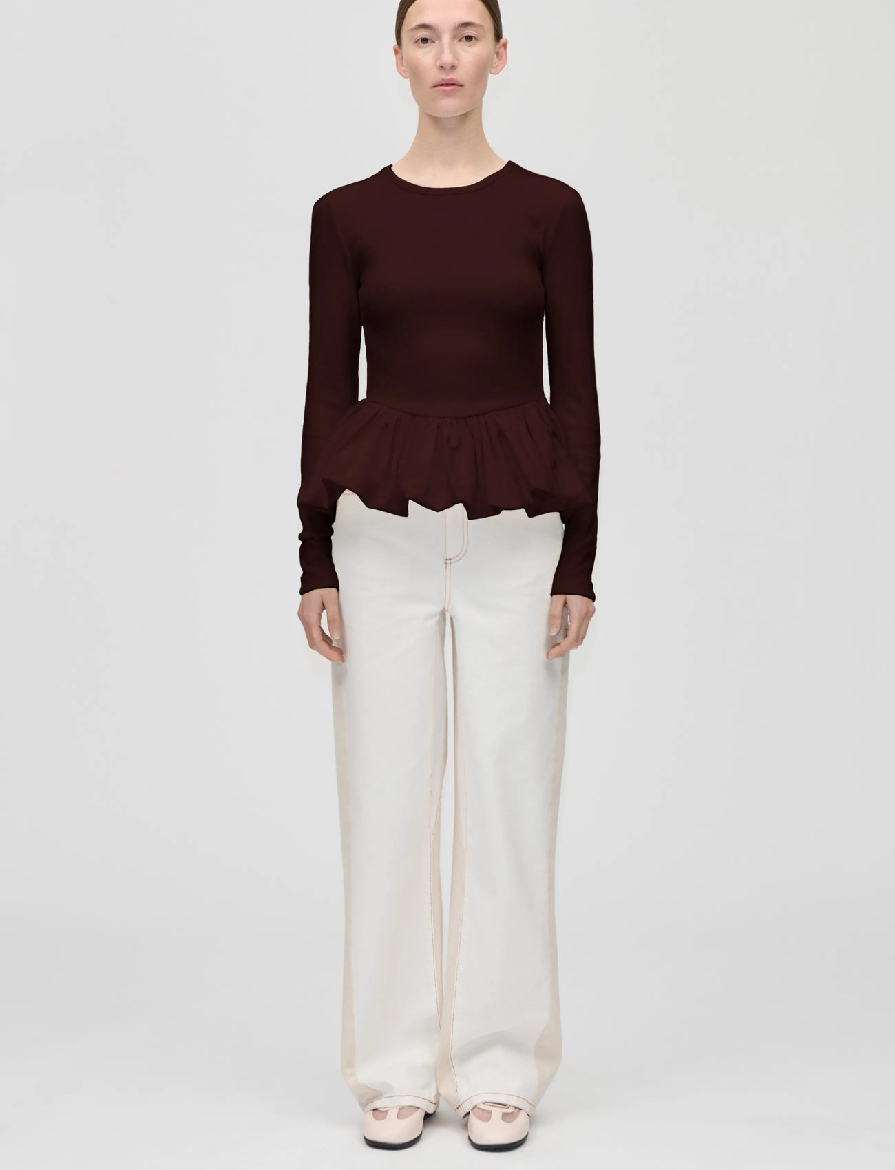 STINE GOYA Rib / Light Cotton, Long Sleeve Balloon Top - Burgundy - XS