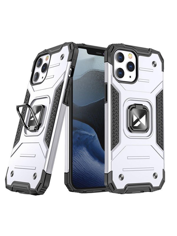 Wozinsky Ring Armor case for iPhone 14 armored cover magnetic holder ring silver