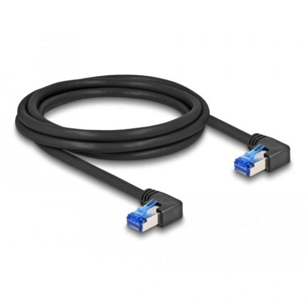 Delock RJ45-verkkokaapeli Cat.6A S/FTP, kulmaliitin oikealle, 2 m - musta