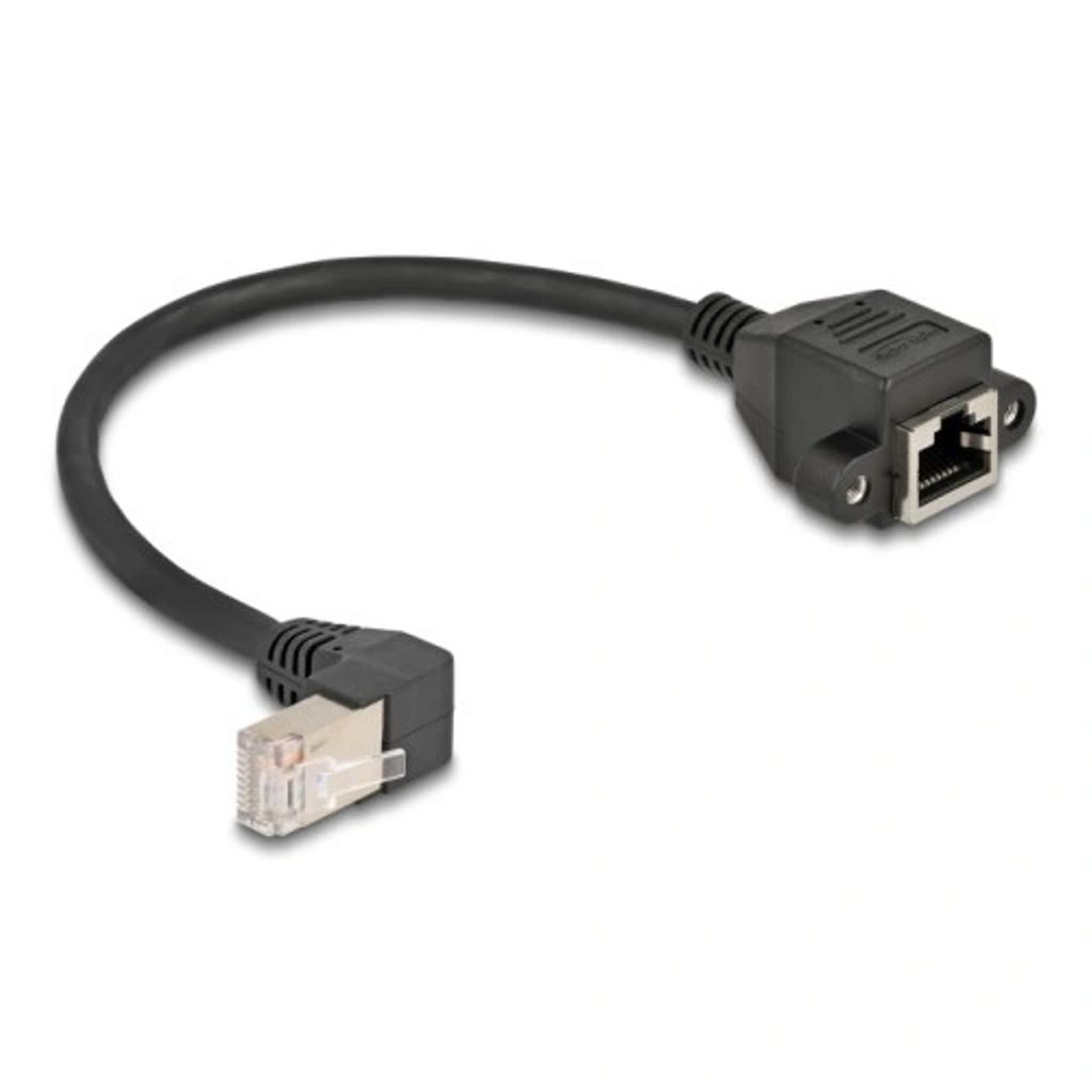 Delock RJ45-verkkojatkokaapeli Cat.6A S/FTP, 90° kulmaliitin, 25 cm