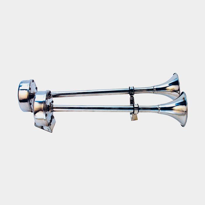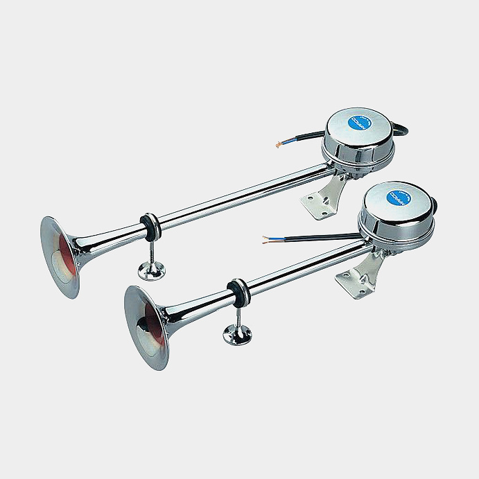 Signaalitorvi veneeseen / trumpettitorvi 12 V Roca Horn Twin Trumpet, ruostumaton teräs, sähkömagneettinen, pinta-asennettava, 345 mm