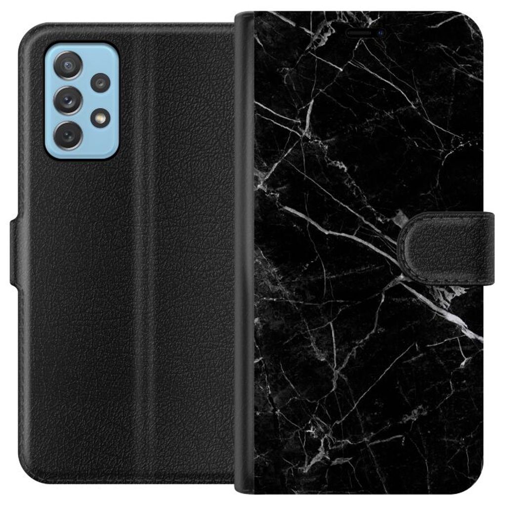 Samsung Galaxy A72 5G Musta Lompakkokotelo Svart marmor