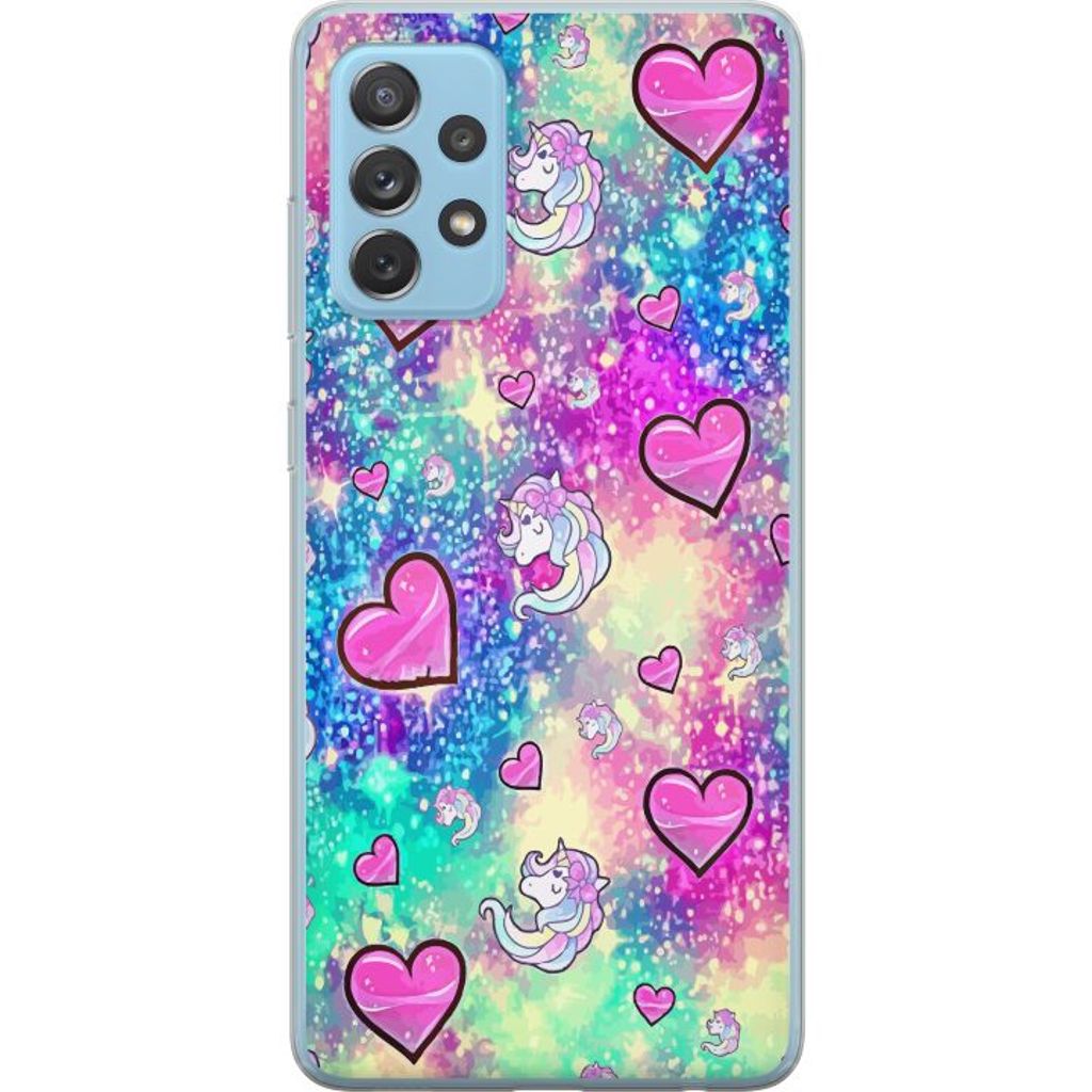 Samsung Galaxy A72 5G Läpinäkyvä Puhelinkotelo Enhörning och hjärtan