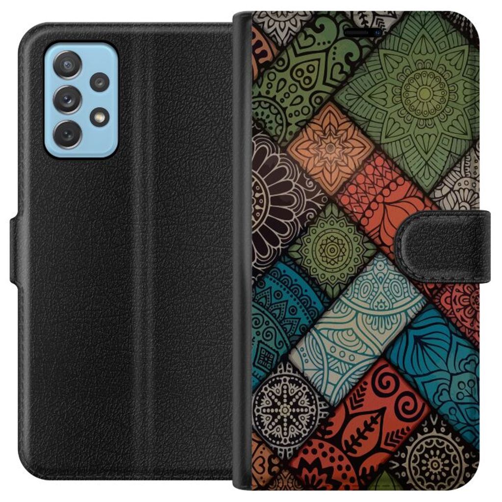 Samsung Galaxy A72 5G Musta Lompakkokotelo Färglada blommor