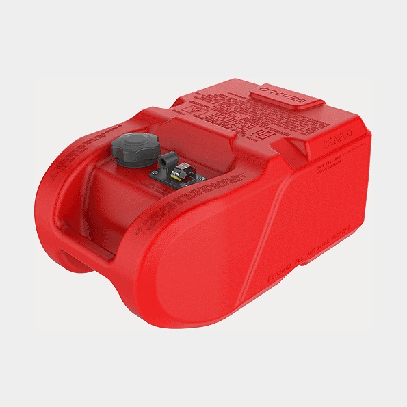 Kannettava polttoainesäiliö SEAFLO, 12 litraa, tankkimittarilla, 430 x 290 x 186 mm, kaksikerroksinen suurtiheyspolyeteeni (HDPE), punainen
