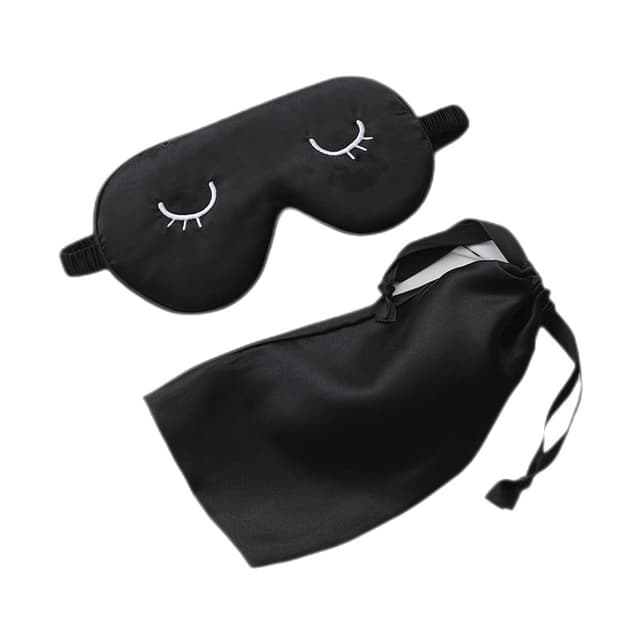 Brodeerattu silkkimäinen Sleep Blackout -silmämaski, jossa säilytyskangaspussi Musta