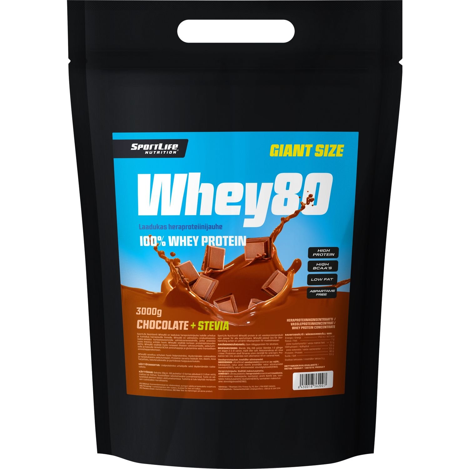 SportLife Whey80 Chocolate + Stevia heraproteiini, 3 kg