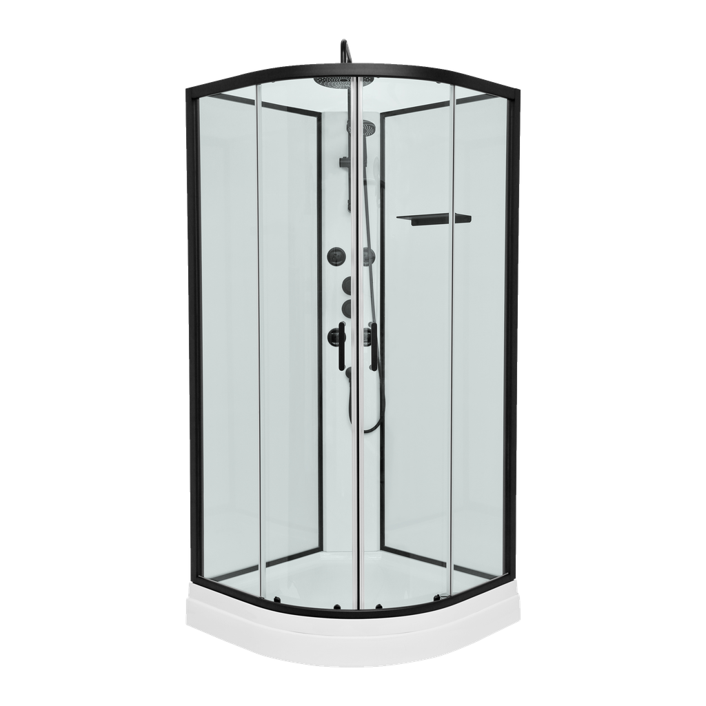 Suihkukaappi LUXERA 90x90 musta/läpinäkyvä ilman jalustaa