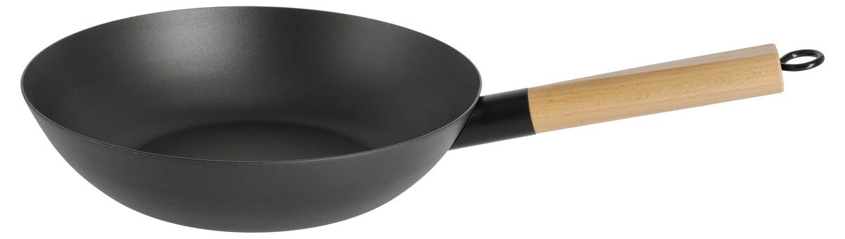 Wokpannu hiiliterästä, tasainen pohja, 28 cm