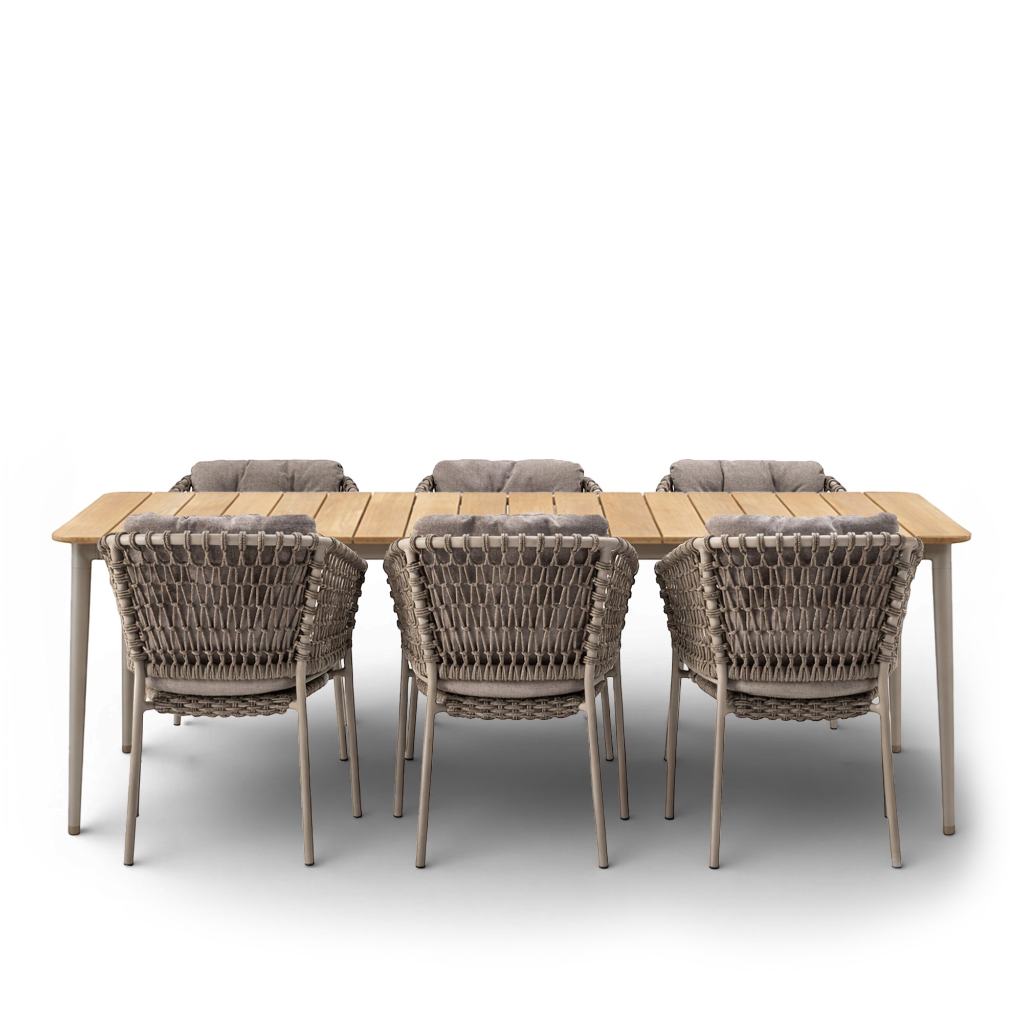 Cane-Line - Ocean-ulkoruokapöydän tuolit 6 kpl ja Core-ulkoruokapöytä 210 x 90 cm – Taupe - Ulkoruokailuryhmät - Puu/Synteettinen