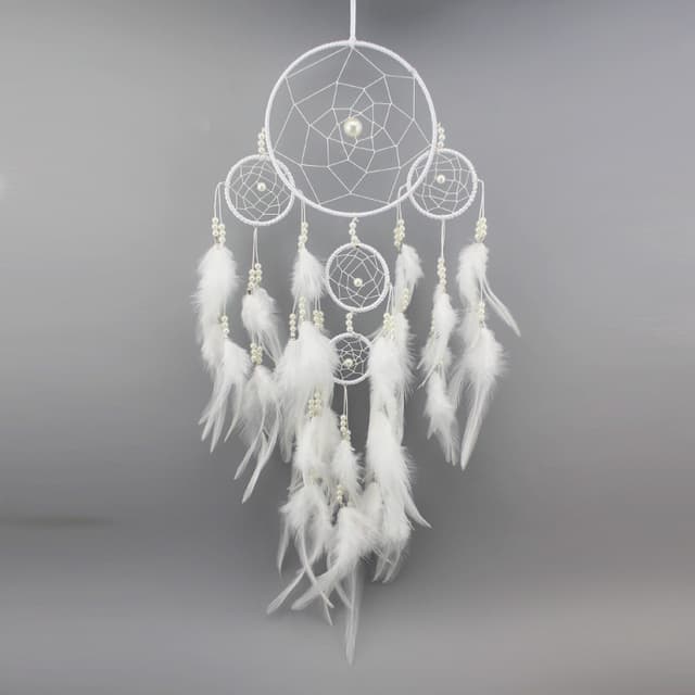 Käsintehty Unisieppari Rottinkin Helmillä ja Höyhenillä Seinälle.
