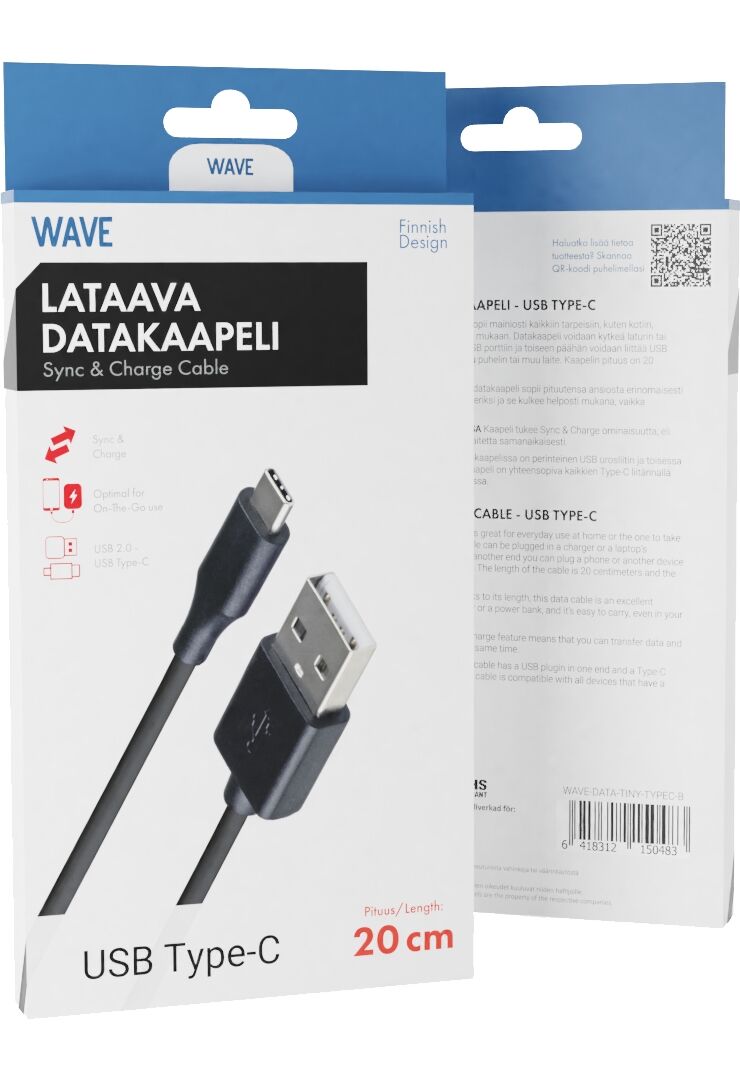 Wave Lataava Usb 2.0 - Type-c, Datakaapeli, Wave-data-typec-w