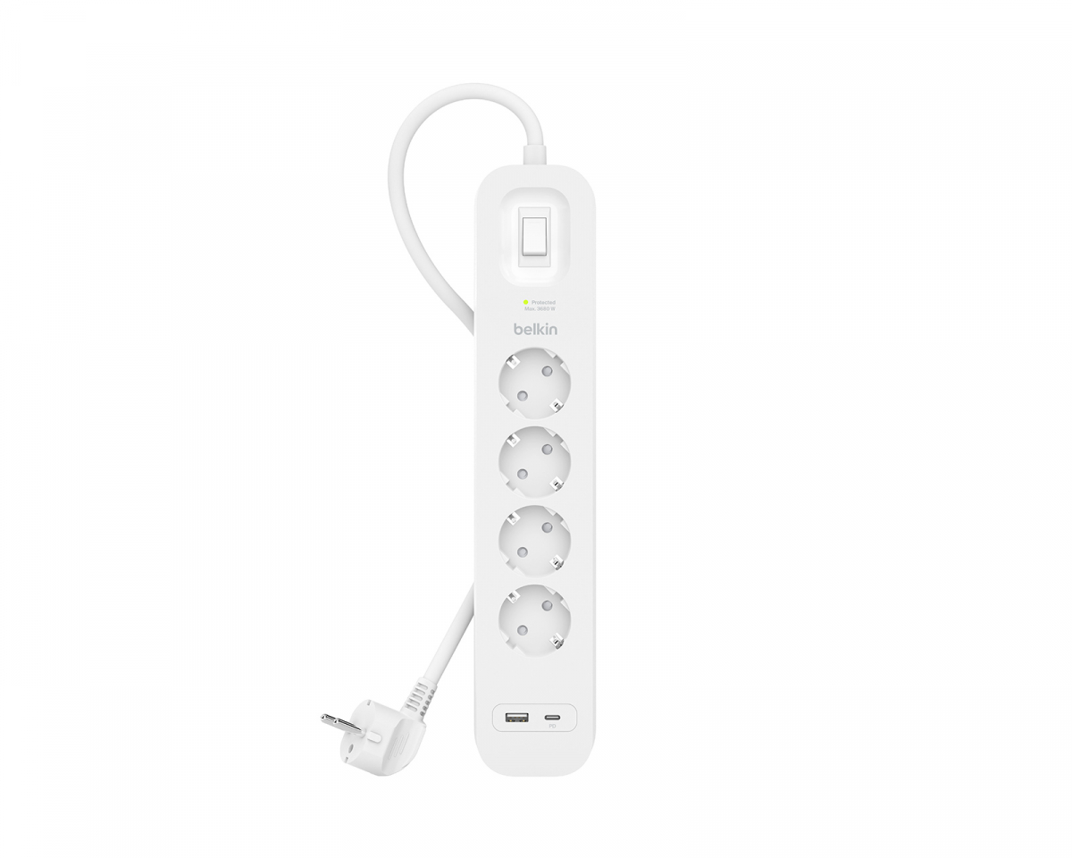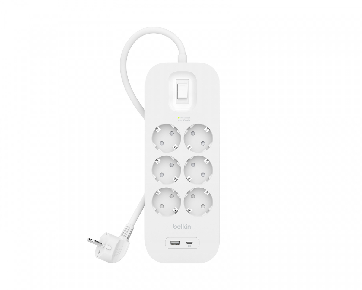 Belkin Överspänningsskydd 8-vägs Grenuttag 1 USB-C 18W PD, 1 USB-A