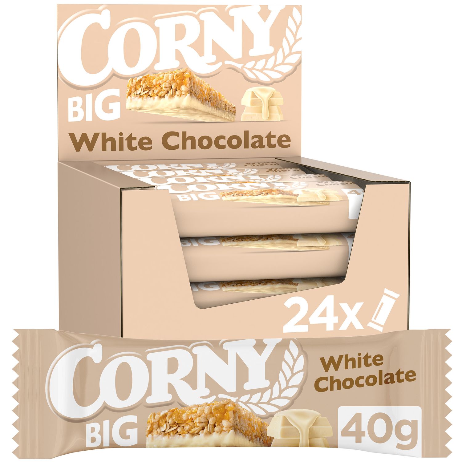 Corny BIG Valkosuklaa välipalapatukka, 24 x 40 g