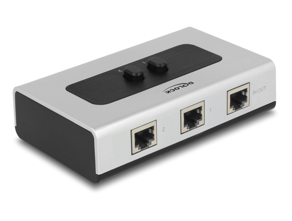 Delock Verkkokytkin RJ45 10 Gbps 2-porttinen manuaalinen kaksisuuntainen – Harmaa/musta