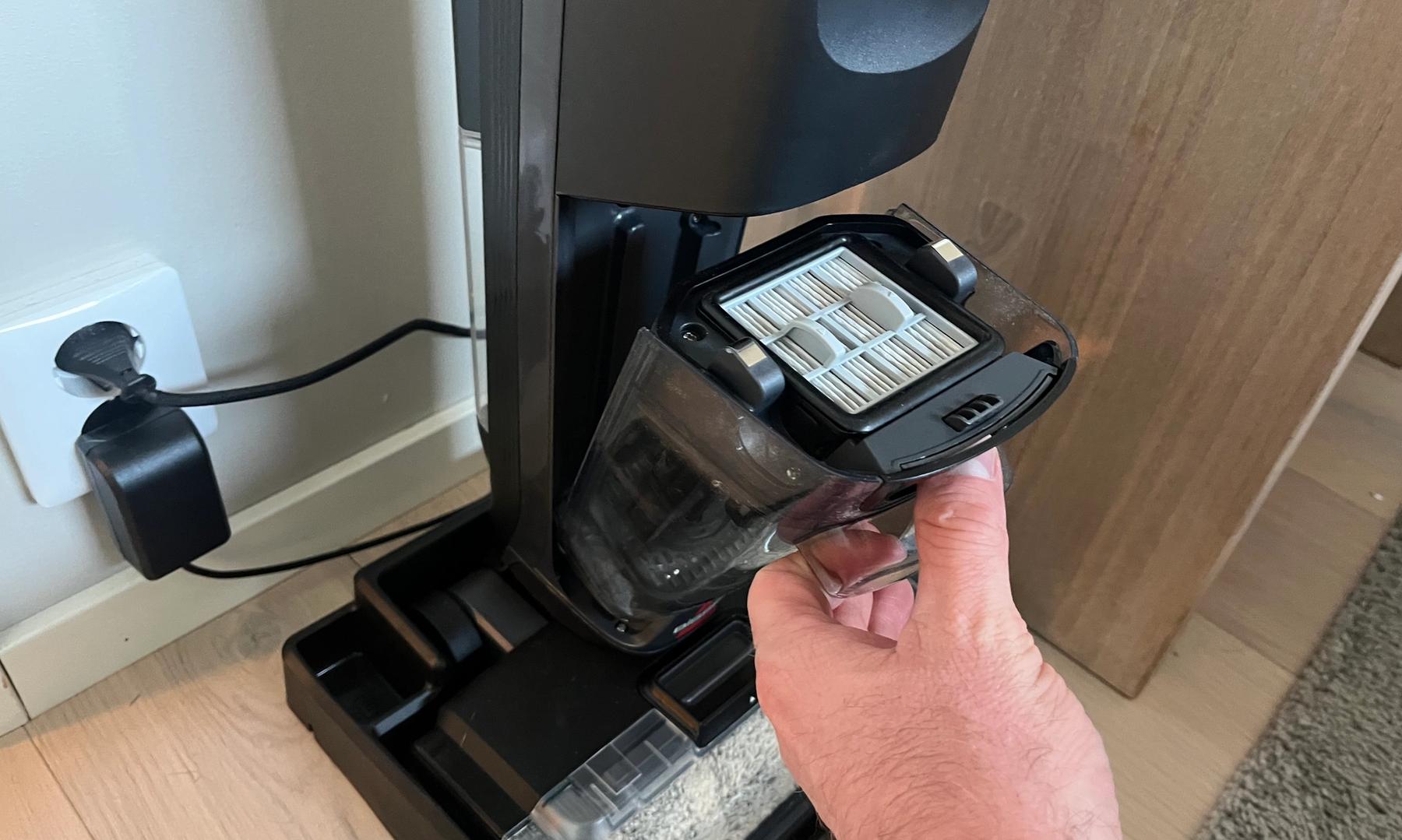 Kädensijan intuitiiviset säätimet mahdollistavat helpon siirtymisen imuroinnin ja märkäpuhdistuksen välillä, ja veden virtausta voi säätää tarpeen mukaan. Lataustelakassa on sisäänrakennettu automaattinen puhdistustoiminto, joka helpottaa harjarullan ja sisäosien puhdistusta jokaisen käytön jälkeen. Tämä vähentää huomattavasti manuaalisen puhdistuksen tarvetta ja parantaa hygieniaa.